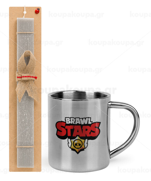 Brawl Stars, Easter Set, metallic thermal cup (300ml) & Easter aromatic flat candle (30cm) (GRAY)