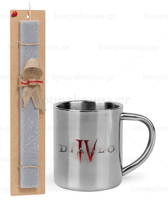 Diablo iv, Easter Set, metallic thermal cup (300ml) & Easter aromatic flat candle (30cm) (GRAY)