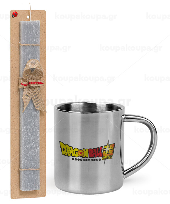 DragonBallZ, Easter Set, metallic thermal cup (300ml) & Easter aromatic flat candle (30cm) (GRAY)