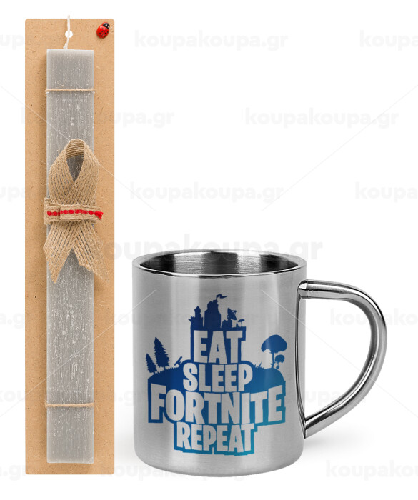 Eat Sleep Fortnite Repeat, Easter Set, metallic thermal cup (300ml) & Easter aromatic flat candle (30cm) (GRAY)