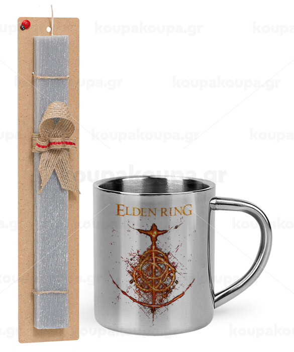 Elden Ring, Easter Set, metallic thermal cup (300ml) & Easter aromatic flat candle (30cm) (GRAY)