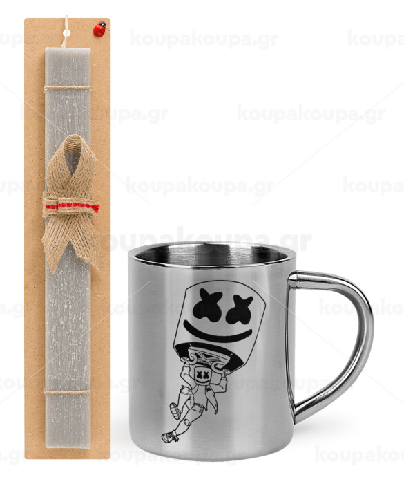 Fortnite Marshmello, Easter Set, metallic thermal cup (300ml) & Easter aromatic flat candle (30cm) (GRAY)
