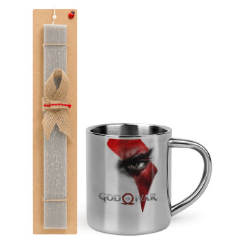 God of war Stratos, Easter Set, metallic thermal cup (300ml) & Easter aromatic flat candle (30cm) (GRAY)