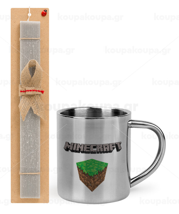Minecraft dirt, Easter Set, metallic thermal cup (300ml) & Easter aromatic flat candle (30cm) (GRAY)