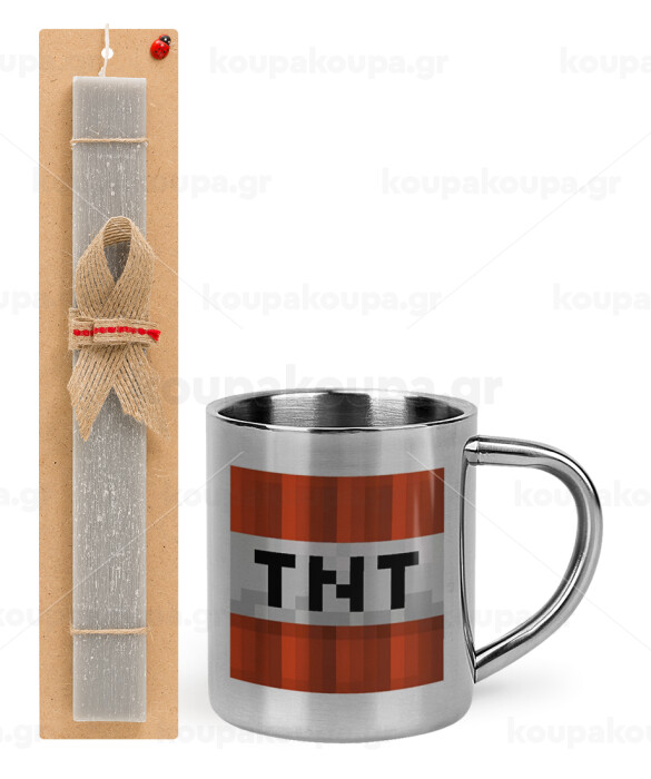 Minecraft TNT, Easter Set, metallic thermal cup (300ml) & Easter aromatic flat candle (30cm) (GRAY)