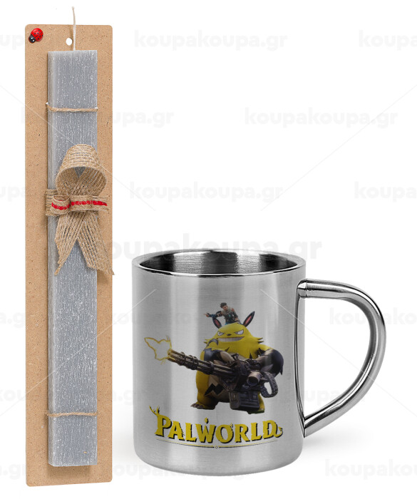Palworld, Easter Set, metallic thermal cup (300ml) & Easter aromatic flat candle (30cm) (GRAY)