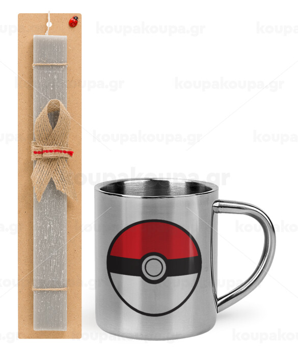 Pokemon ball, Easter Set, metallic thermal cup (300ml) & Easter aromatic flat candle (30cm) (GRAY)