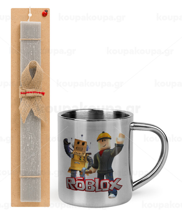 Roblox, Easter Set, metallic thermal cup (300ml) & Easter aromatic flat candle (30cm) (GRAY)