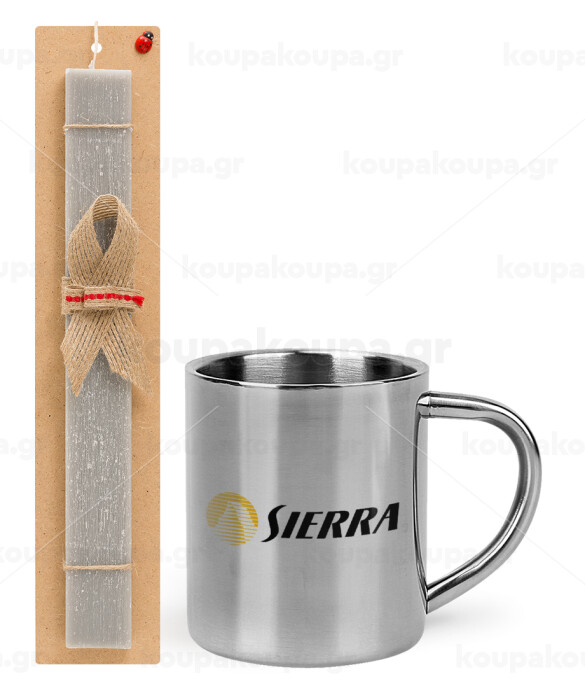SIERRA, Easter Set, metallic thermal cup (300ml) & Easter aromatic flat candle (30cm) (GRAY)