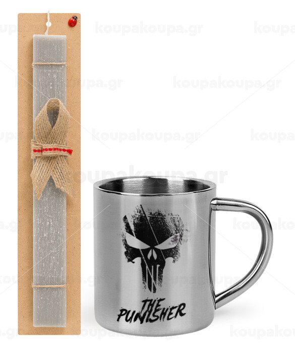 The punisher, Easter Set, metallic thermal cup (300ml) & Easter aromatic flat candle (30cm) (GRAY)