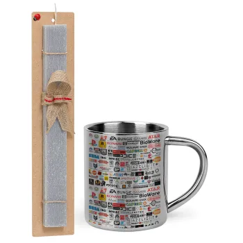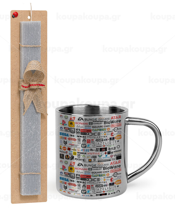 Video Game Studio Logos, Easter Set, metallic thermal cup (300ml) & Easter aromatic flat candle (30cm) (GRAY)
