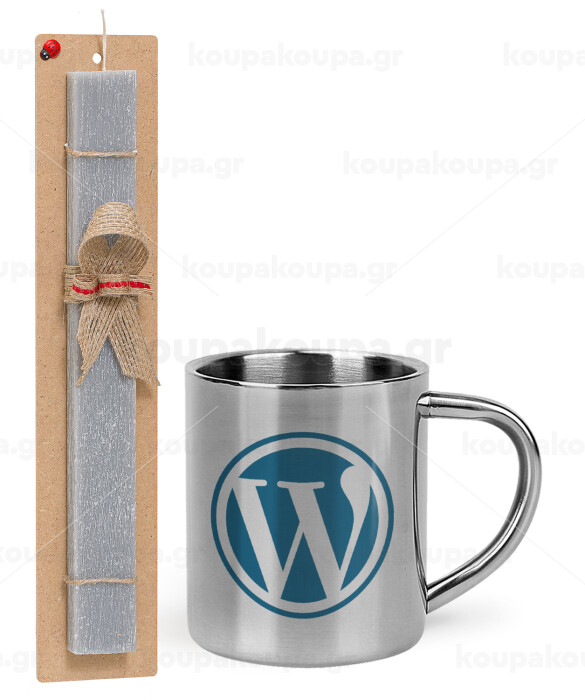 Wordpress, Easter Set, metallic thermal cup (300ml) & Easter aromatic flat candle (30cm) (GRAY)