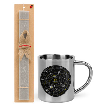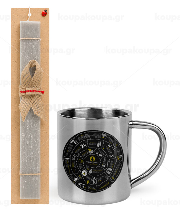 Προχίστορας, Easter Set, metallic thermal cup (300ml) & Easter aromatic flat candle (30cm) (GRAY)