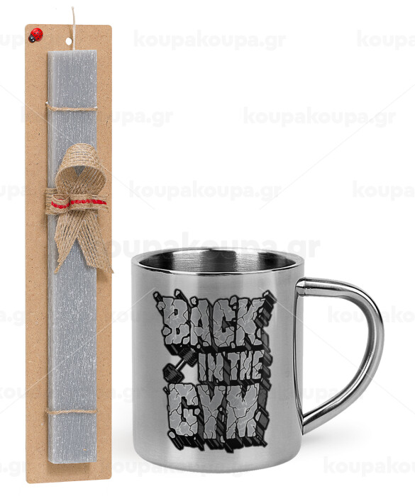 Back in the GYM, Easter Set, metallic thermal cup (300ml) & Easter aromatic flat candle (30cm) (GRAY)