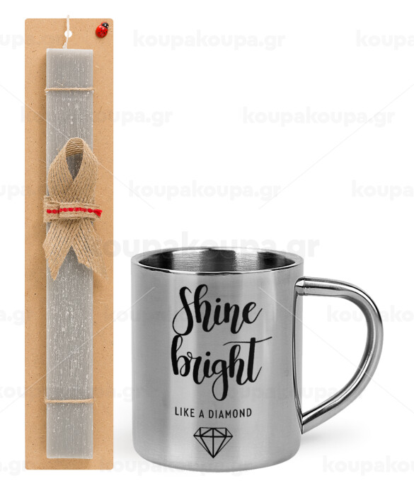Bright, Shine like a Diamond, Easter Set, metallic thermal cup (300ml) & Easter aromatic flat candle (30cm) (GRAY)