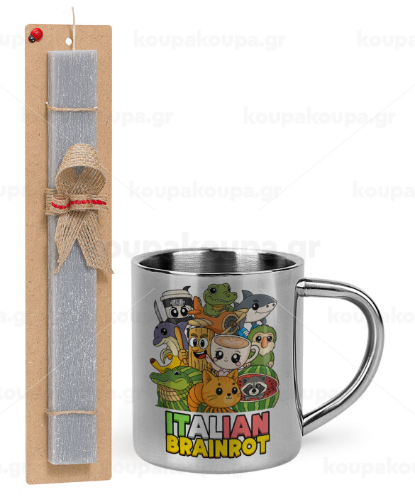Italian Brainrot friends, Easter Set, metallic thermal cup (300ml) & Easter aromatic flat candle (30cm) (GRAY)