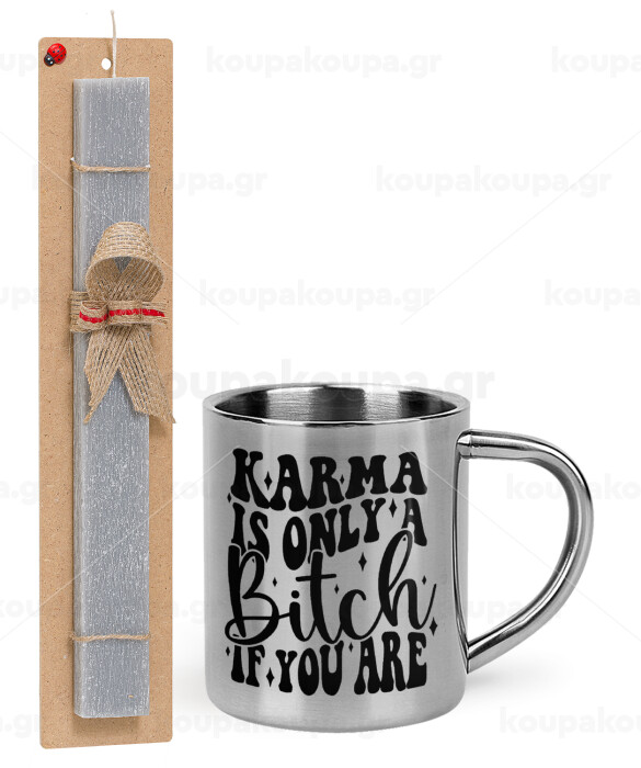 Karma is Only A Bitch if You Are, Easter Set, metallic thermal cup (300ml) & Easter aromatic flat candle (30cm) (GRAY)