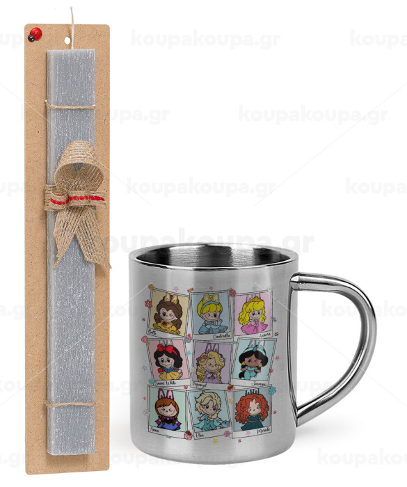 Labubu characters, Easter Set, metallic thermal cup (300ml) & Easter aromatic flat candle (30cm) (GRAY)