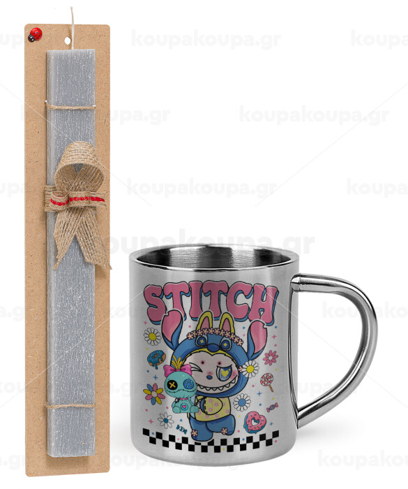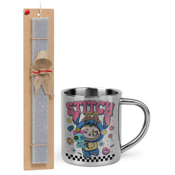 Labubu Stitch, Easter Set, metallic thermal cup (300ml) & Easter aromatic flat candle (30cm) (GRAY)