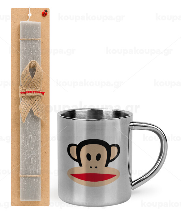 Monkey, Easter Set, metallic thermal cup (300ml) & Easter aromatic flat candle (30cm) (GRAY)