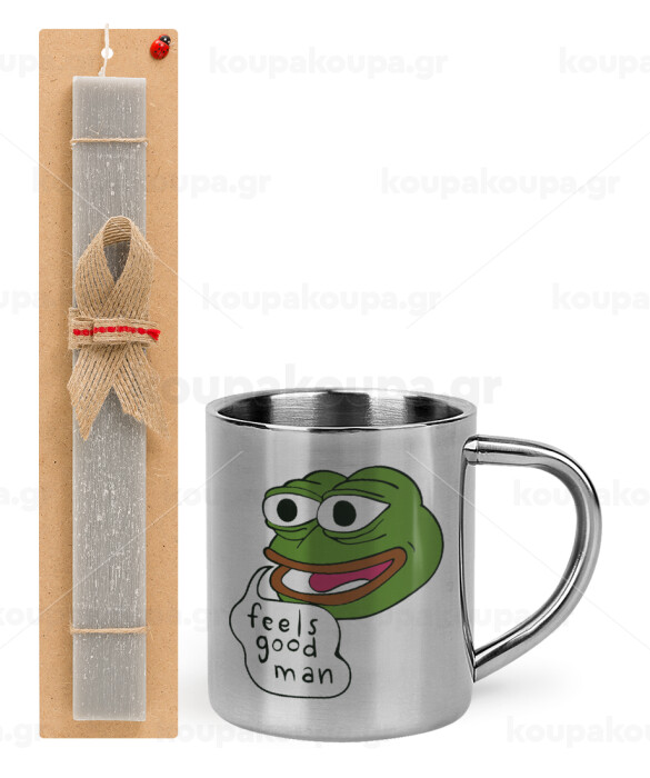 Pepe the frog, Easter Set, metallic thermal cup (300ml) & Easter aromatic flat candle (30cm) (GRAY)