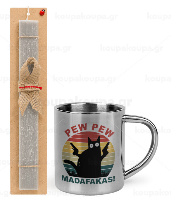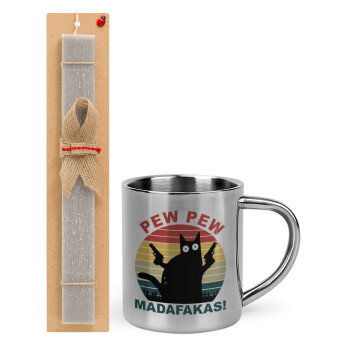 PEW PEW madafakas, Easter Set, metallic thermal cup (300ml) & Easter aromatic flat candle (30cm) (GRAY)