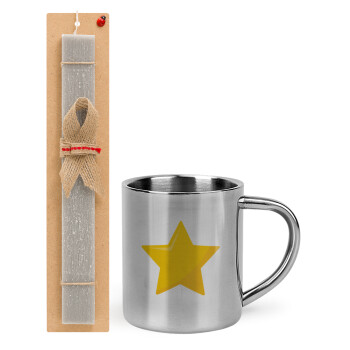 Star, Easter Set, metallic thermal cup (300ml) & Easter aromatic flat candle (30cm) (GRAY)