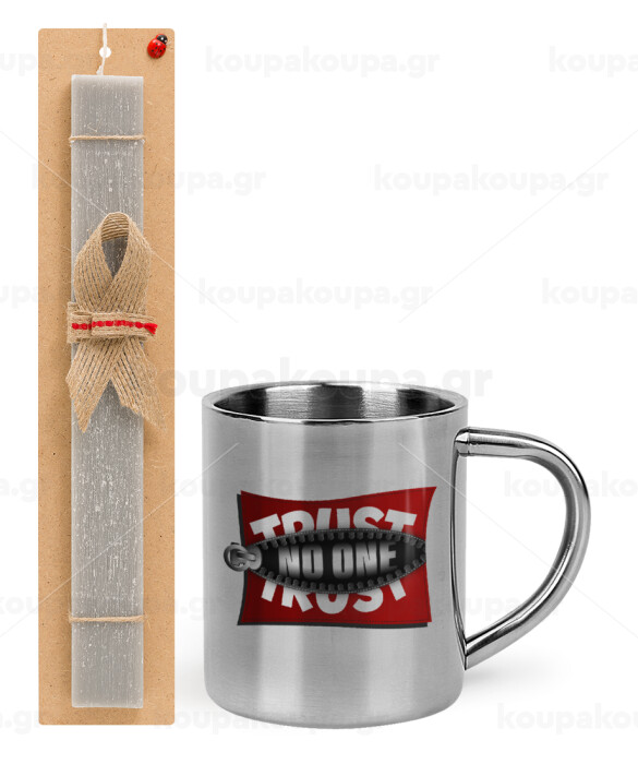 Trust no one... (zipper), Easter Set, metallic thermal cup (300ml) & Easter aromatic flat candle (30cm) (GRAY)