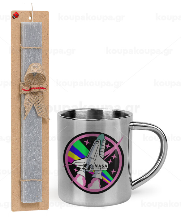 NASA pink, Easter Set, metallic thermal cup (300ml) & Easter aromatic flat candle (30cm) (GRAY)