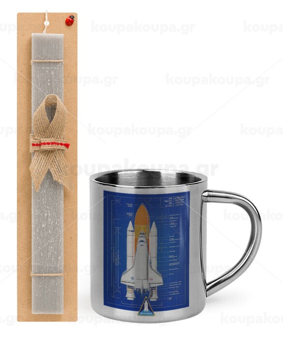 Nasa Space Shuttle, Easter Set, metallic thermal cup (300ml) & Easter aromatic flat candle (30cm) (GRAY)