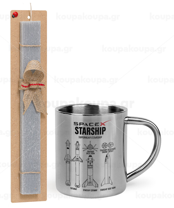 Space X, Easter Set, metallic thermal cup (300ml) & Easter aromatic flat candle (30cm) (GRAY)