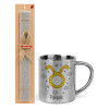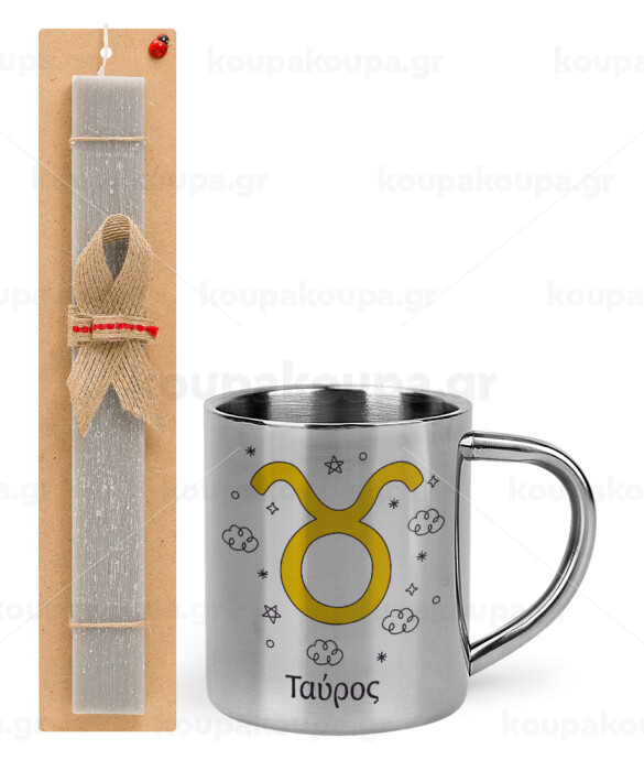 Ζώδια Ταύρος, Easter Set, metallic thermal cup (300ml) & Easter aromatic flat candle (30cm) (GRAY)