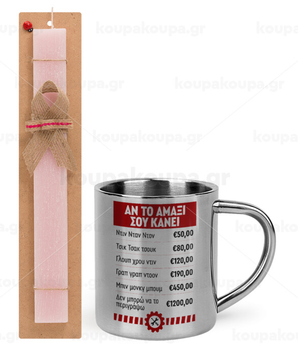 Annoying Noise in Car, Easter Set, metallic thermal cup (300ml) & aromatic flat Easter candle (30cm) (PINK)