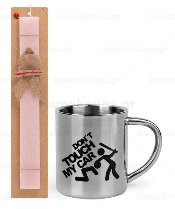 Don't touch my car, Easter Set, metallic thermal cup (300ml) & aromatic flat Easter candle (30cm) (PINK)
