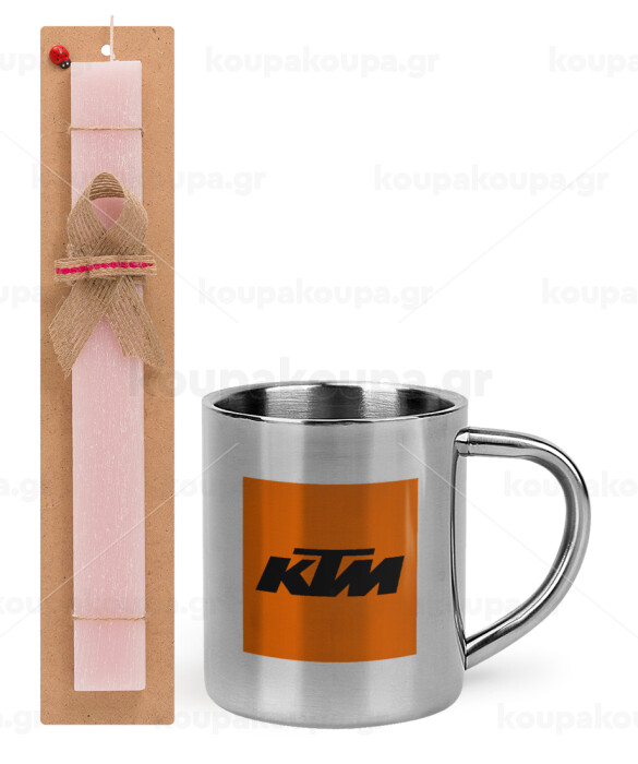 KTM, Easter Set, metallic thermal cup (300ml) & aromatic flat Easter candle (30cm) (PINK)