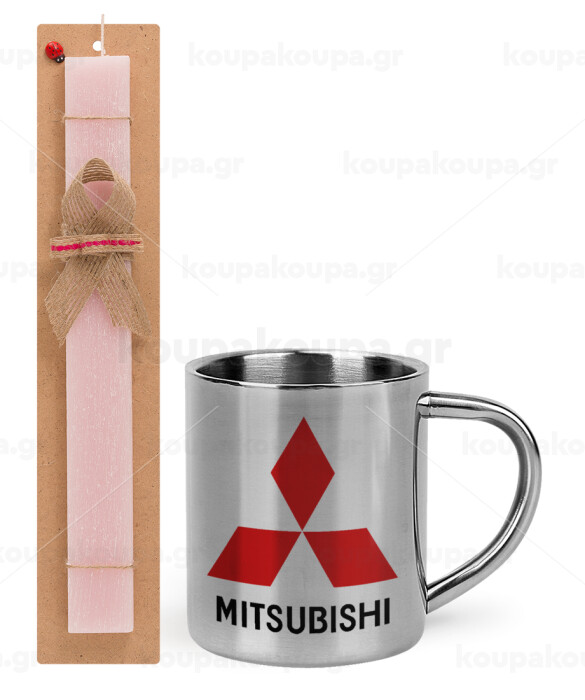 mitsubishi, Easter Set, metallic thermal cup (300ml) & aromatic flat Easter candle (30cm) (PINK)