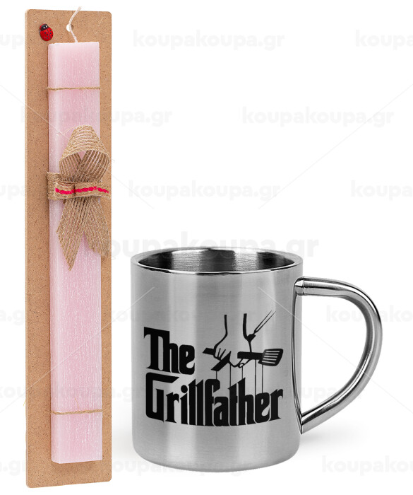 The Grill Father, Easter Set, metallic thermal cup (300ml) & aromatic flat Easter candle (30cm) (PINK)