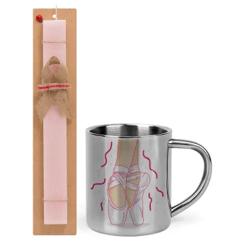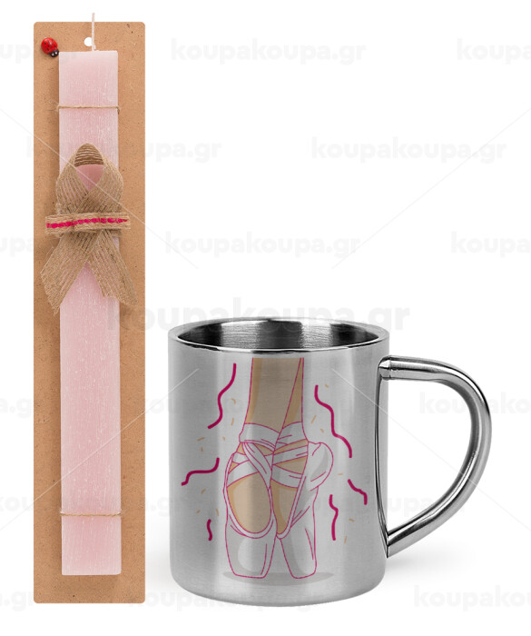 Πουεντ, Easter Set, metallic thermal cup (300ml) & aromatic flat Easter candle (30cm) (PINK)