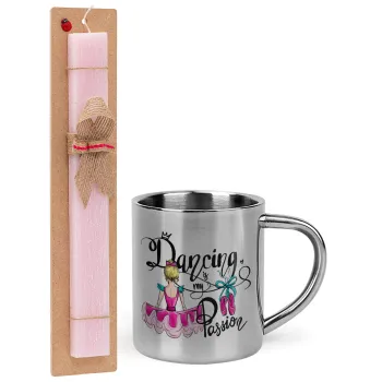 Dancing is my Passion, Easter Set, metallic thermal cup (300ml) & aromatic flat Easter candle (30cm) (PINK)