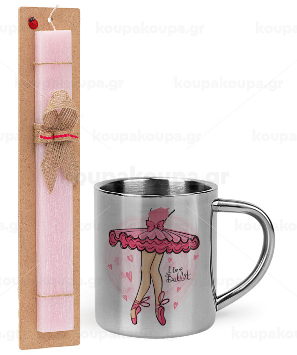 I Love Ballet, Easter Set, metallic thermal cup (300ml) & aromatic flat Easter candle (30cm) (PINK)