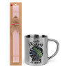 A bad day FISHING is better than a good day at work, Easter Set, metallic thermal cup (300ml) & aromatic flat Easter candle (30cm) (PINK)