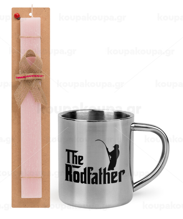 The rodfather, Easter Set, metallic thermal cup (300ml) & aromatic flat Easter candle (30cm) (PINK)