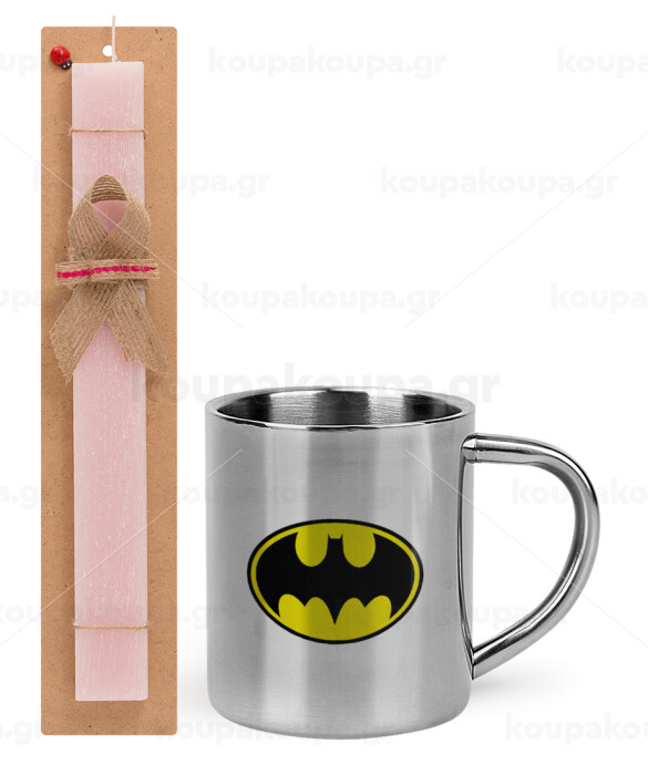 Batman, Easter Set, metallic thermal cup (300ml) & aromatic flat Easter candle (30cm) (PINK)
