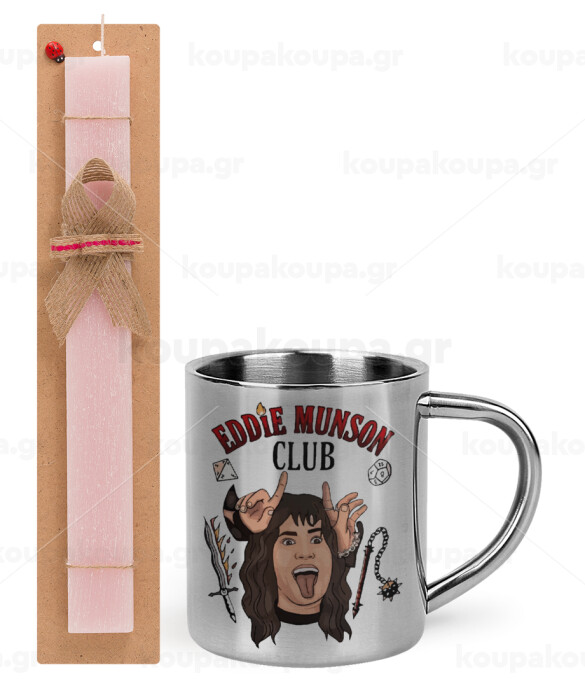 Eddie Munson, Hellfire CLub, Stranger Things, Easter Set, metallic thermal cup (300ml) & aromatic flat Easter candle (30cm) (PINK)