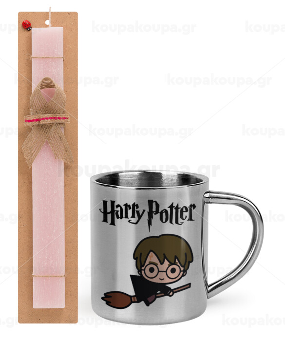 Harry potter kid, Easter Set, metallic thermal cup (300ml) & aromatic flat Easter candle (30cm) (PINK)