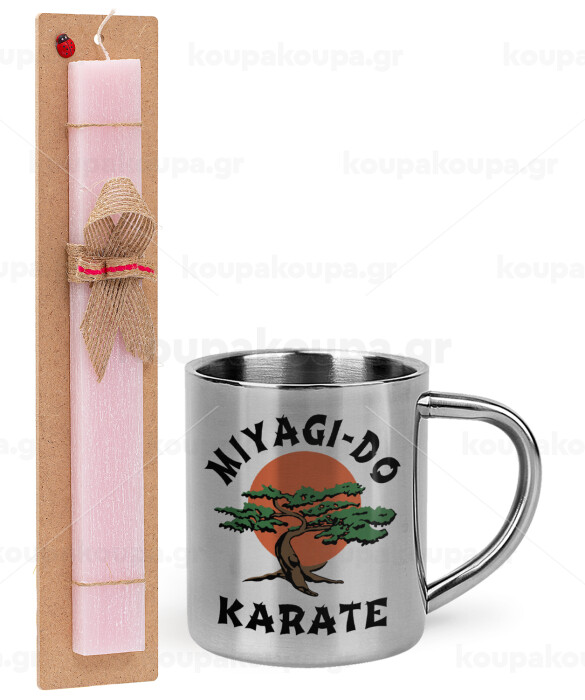 Miyagi-do karate, Easter Set, metallic thermal cup (300ml) & aromatic flat Easter candle (30cm) (PINK)