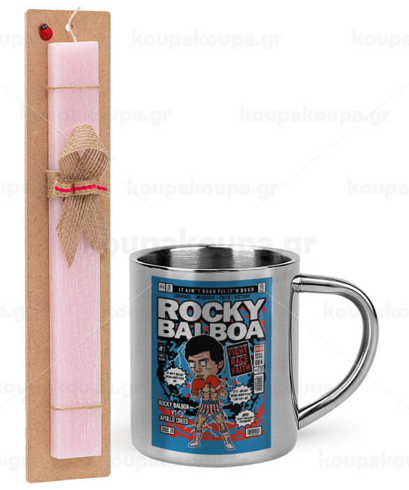 Rocky Balboa, Easter Set, metallic thermal cup (300ml) & aromatic flat Easter candle (30cm) (PINK)