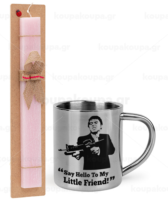 Scarface, Easter Set, metallic thermal cup (300ml) & aromatic flat Easter candle (30cm) (PINK)