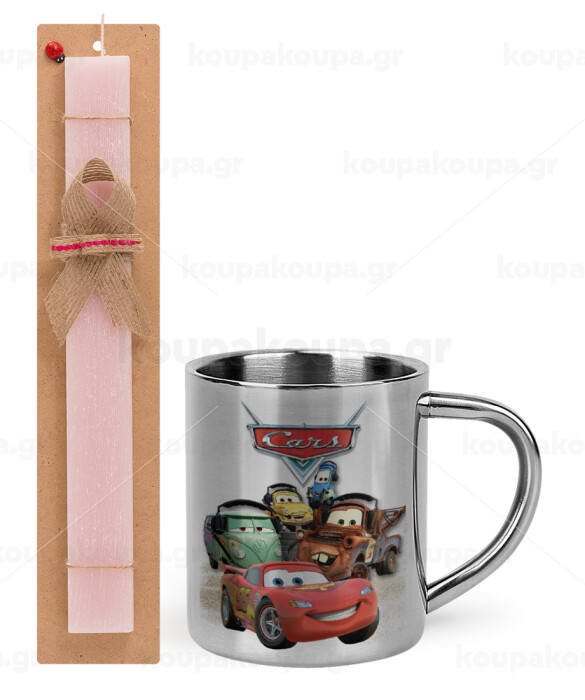 Αυτοκίνητα, Easter Set, metallic thermal cup (300ml) & aromatic flat Easter candle (30cm) (PINK)
