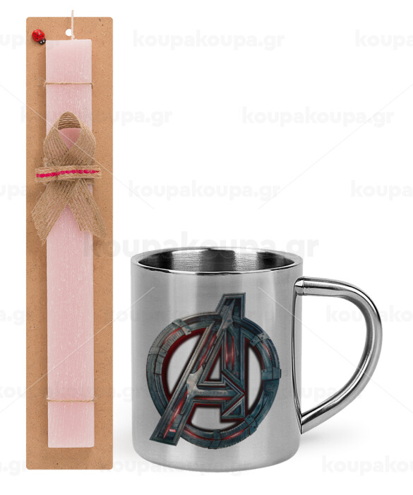 Avengers, Easter Set, metallic thermal cup (300ml) & aromatic flat Easter candle (30cm) (PINK)